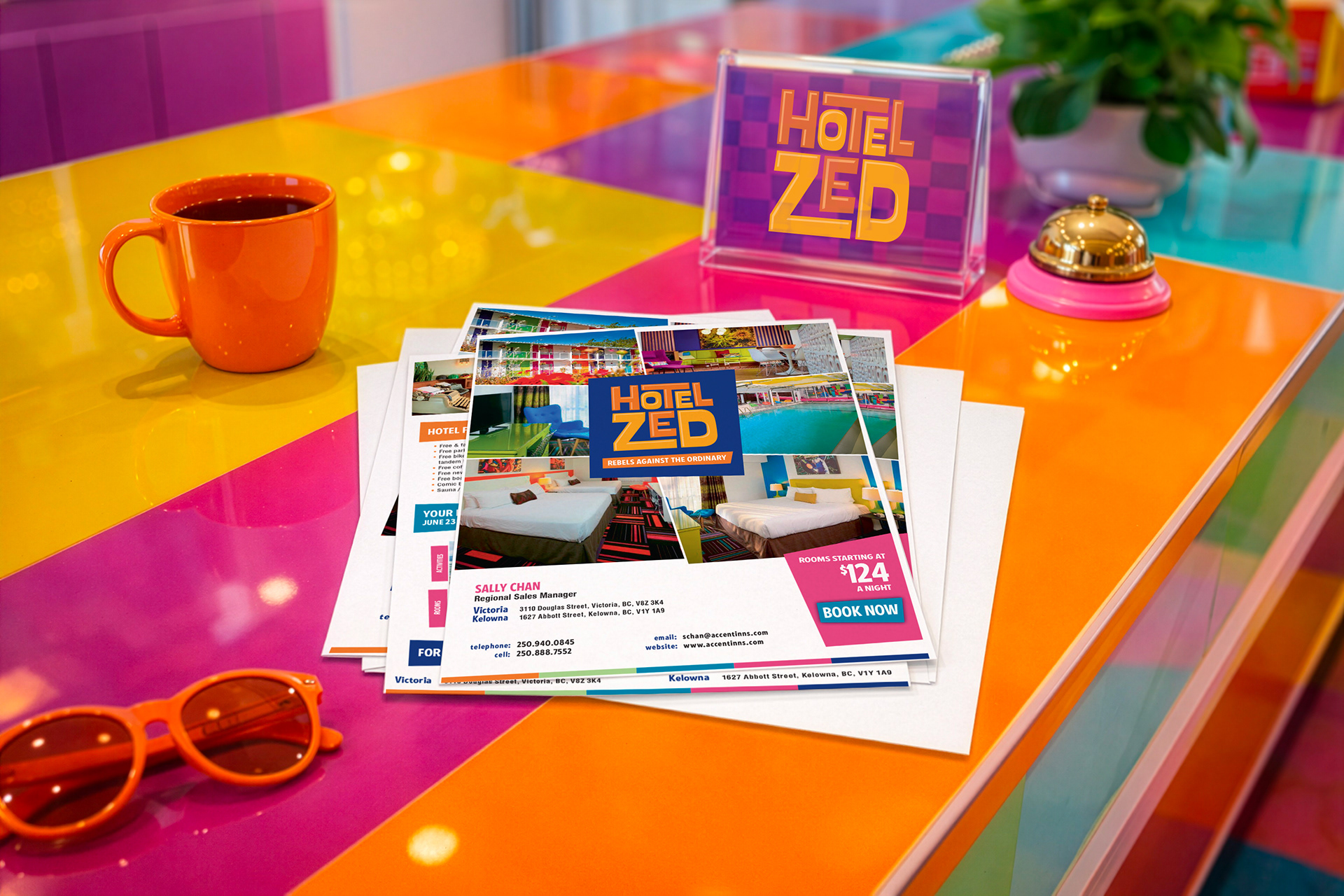The partnership also included the development of new visual systems and creative for Accent Inns’ sister brand, Hotel Zed, evolving the playful DNA into a bolder, more colourful expression.