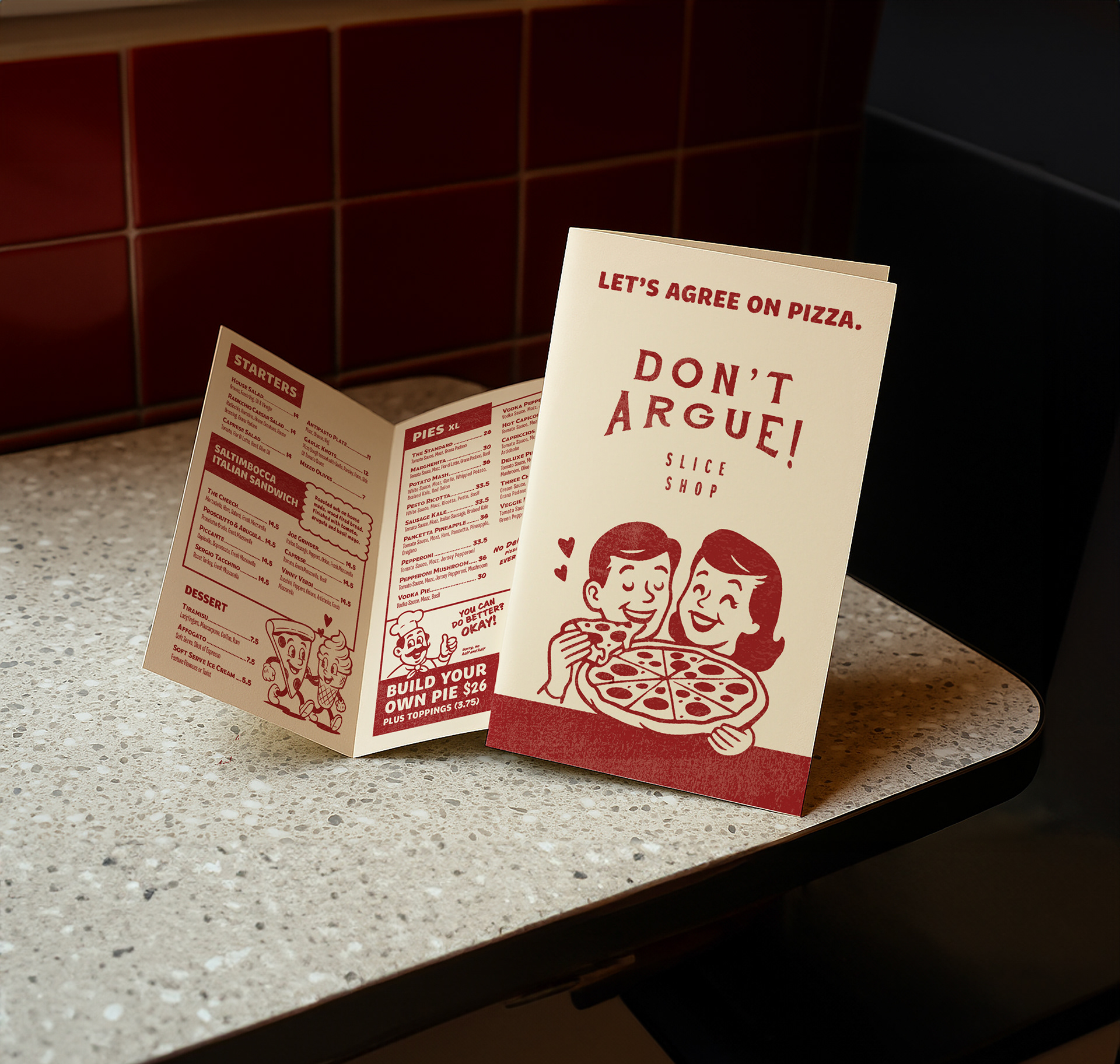 For Don’t Argue, a popular pizza spot in Vancouver, I refreshed the visual identity, designed the digital menu screens, and developed key promotional collateral to strengthen the brand’s personality and guest engagement.