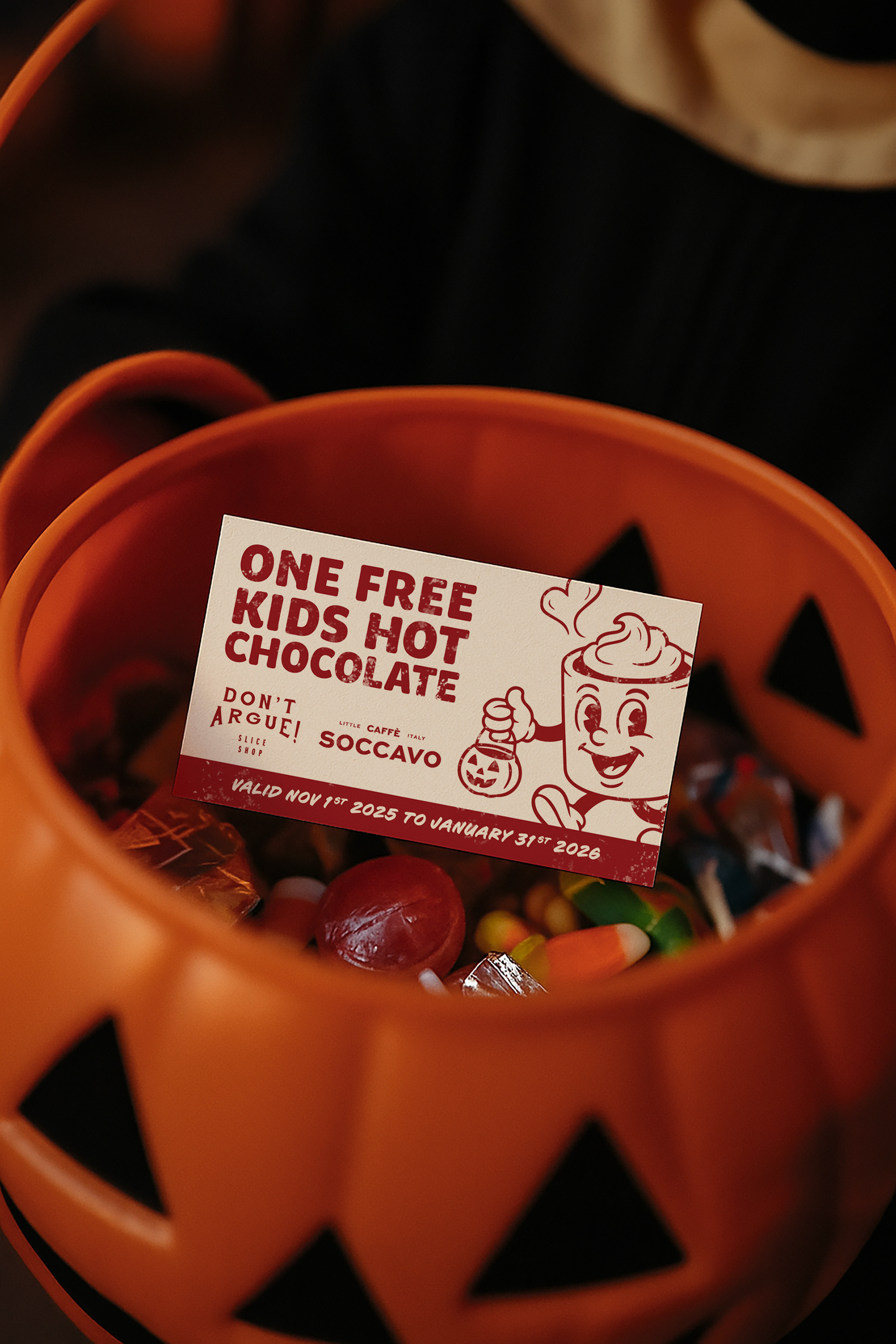 The work included updated flyers, playful retro character illustrations, limited-edition shirt designs, and themed promotional pieces — like free hot chocolate cards for Halloween — all crafted to amplify the brand’s fun, approachable voice in the community while keeping it bold and memorable.