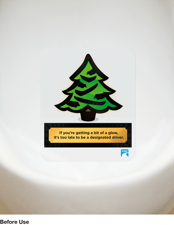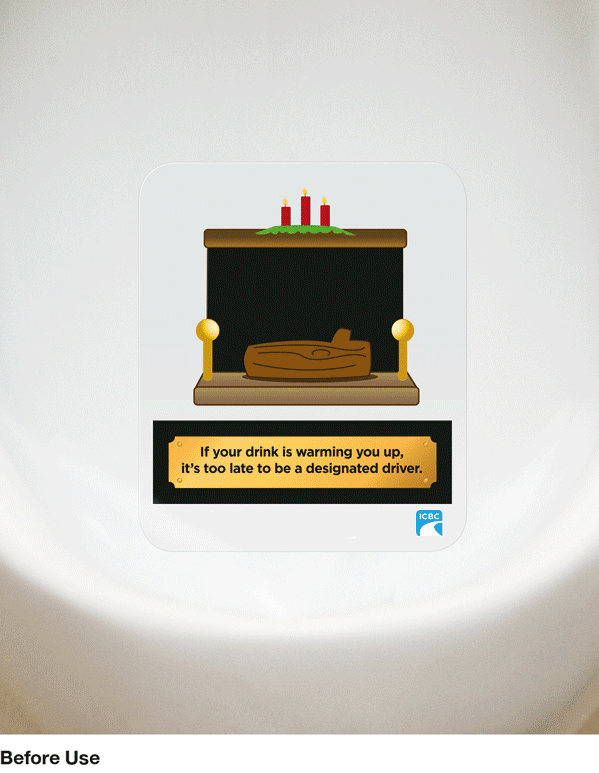 A series of temperature-sensitive washroom ads using thermographic ink. When in use, hidden messages appeared — then reset after flushing — creating a highly memorable and effective behavioural reminder.