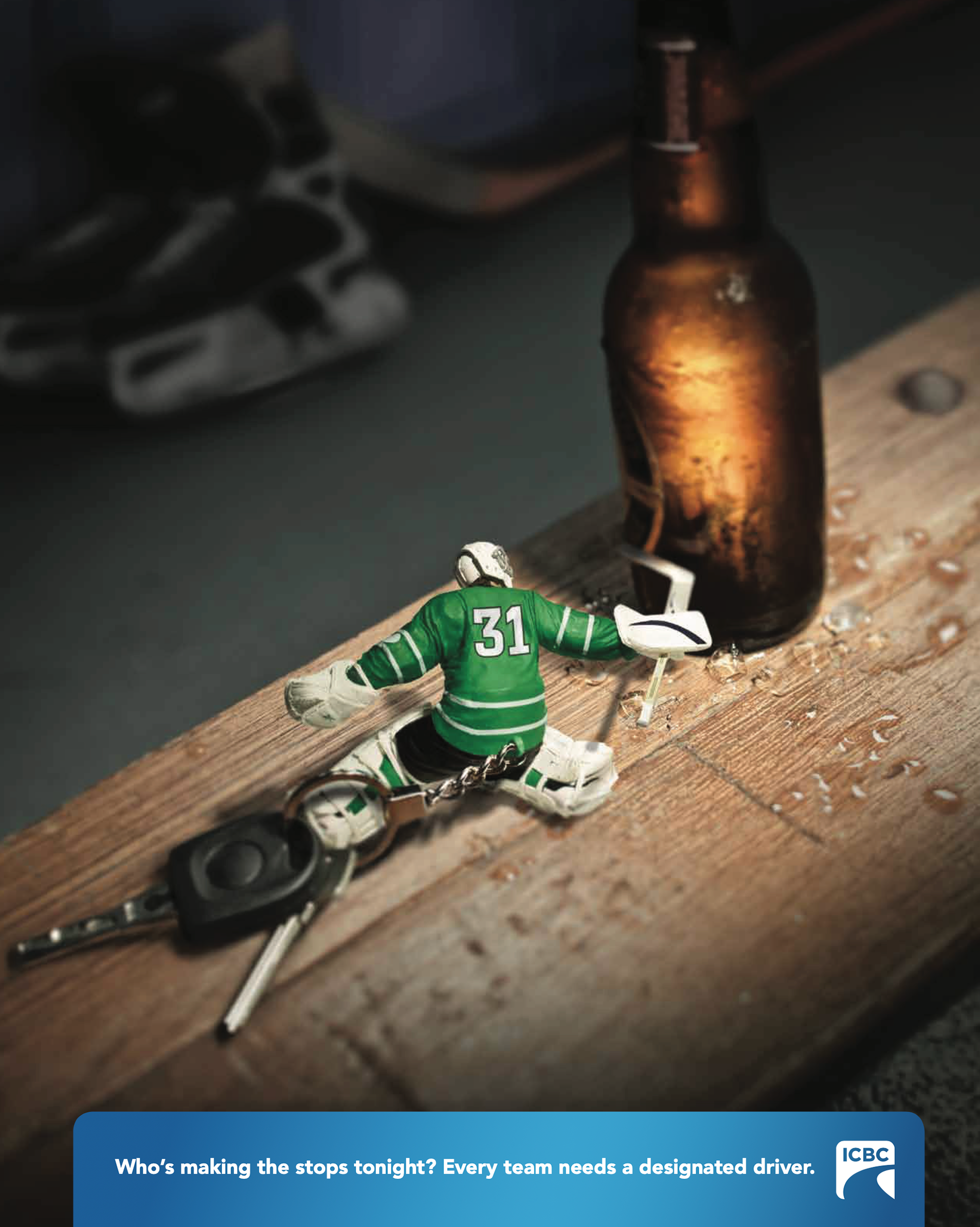 Targeted posters placed in sports bars and recreational venues, encouraging safe ride planning in high-risk social settings.