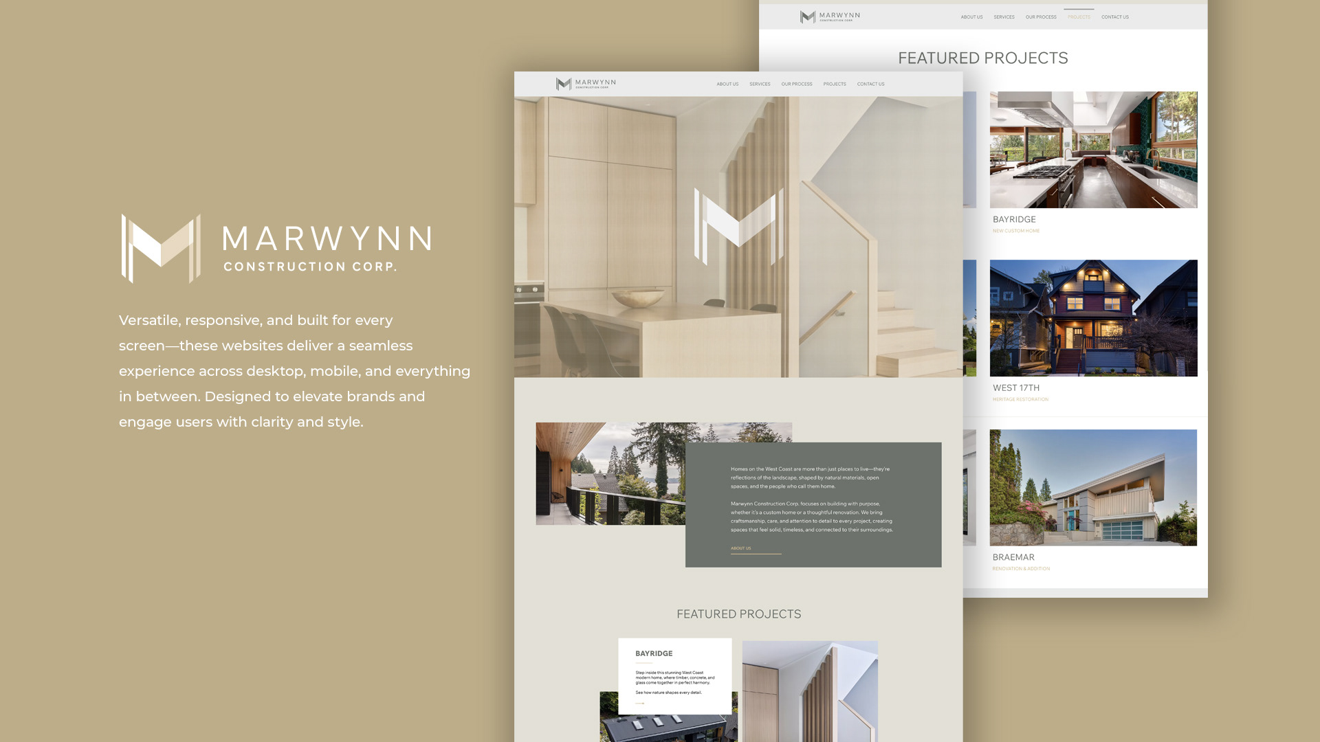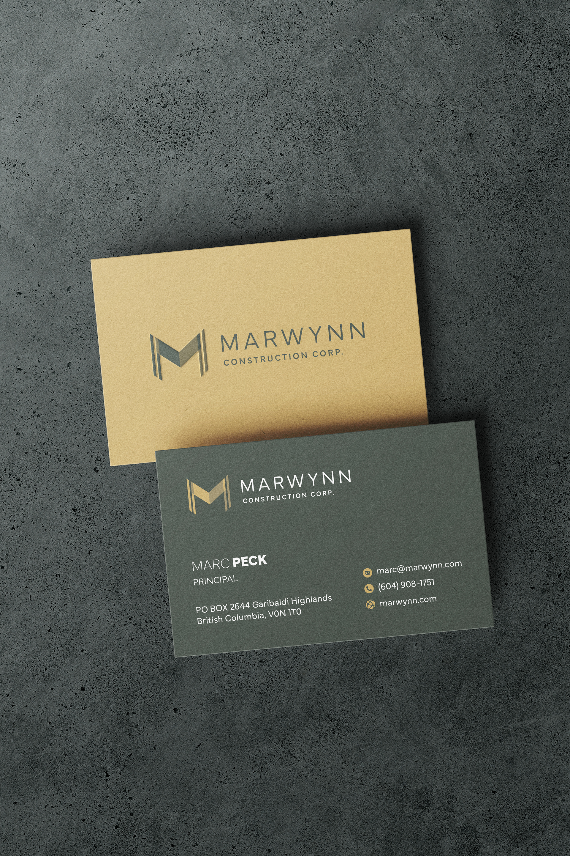 I led the development of Marwynn Construction’s brand from the ground up, creating a cohesive visual system across identity, business cards, signage, website, and hoarding.